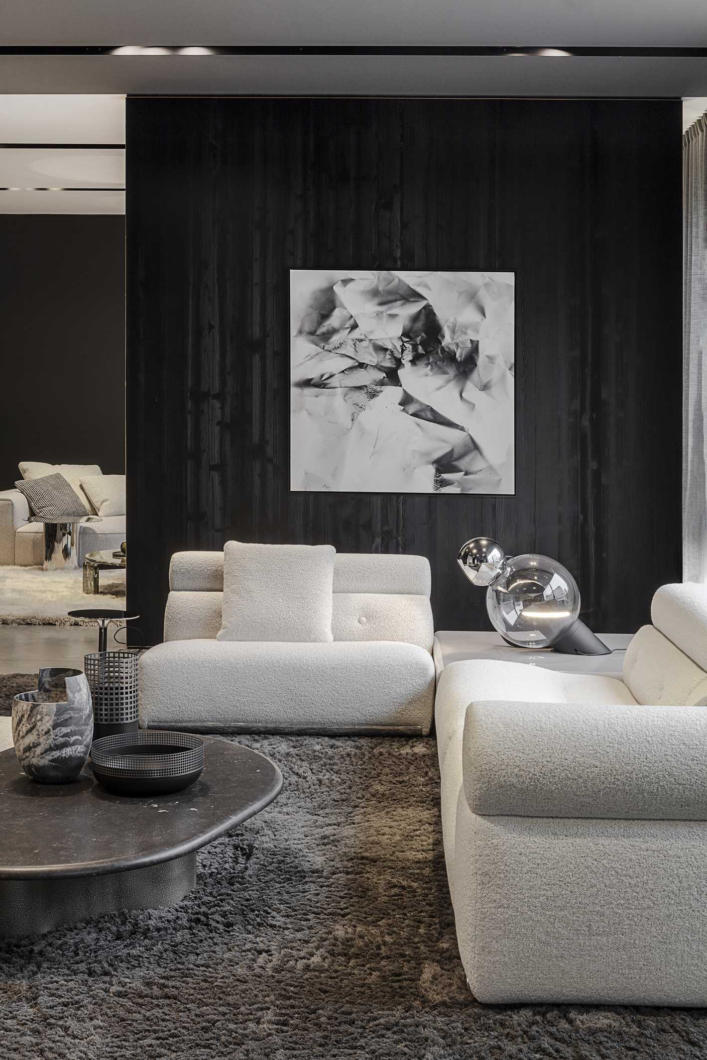 Die aktuellen Minotti Kollektionen werden als Raumkompositionen gezeigt. Zeitlose Möbel, präzise Linien, ausgewogene Proportionen sowie ausgewählte Accessoires und Leuchten verschmelzen zu einem klaren und ruhigen Gesamtbild.
